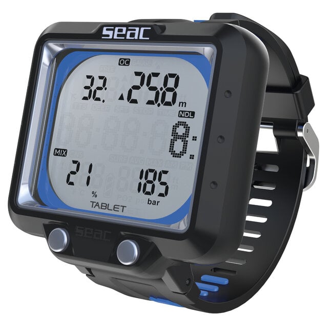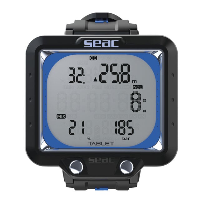 Der SEAC Tablet ist ein vielseitiger Tauchcomputer mit drahtloser Flaschendruckübertragung und integrierter Bluetooth-Schnittstelle. In Kombination mit dem mitgelieferten SEAC Wireless Transmitter können Druckwerte direkt an den Computer gesendet werden, sodass Gasverbrauch und Restgas jederzeit im Blick bleiben.